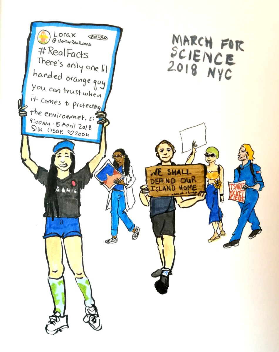 I was not able to attend the first March for Science, but I did march in the second. April 14, 2018 was a 71-degree day in New York City. My family and I joined the crowd at Washington Square Park and walked down Broadway to chants of “Science Not Silence,” “What do we want? Science! When do we want it? After peer review!” and inexplicably, “No coffee? No science!”