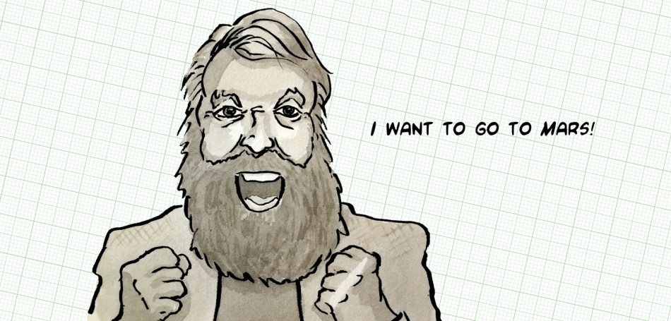 “And Zubrin, who’s doing Mars Direct, he’s building sheds and things on Devon Island in the Arctic and training people for Mars, and I’m part of the Martian program. I inspire them. I wore Martian prototype suits, 27 million quid each.